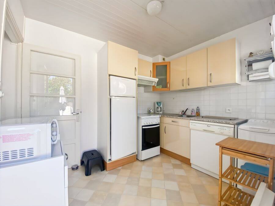 - une cuisine aménagée et équipée avec gazinière (4 feux et four électrique), frigo-congélateur, lave-vaisselle, lave-linge, hotte et micro ondes .