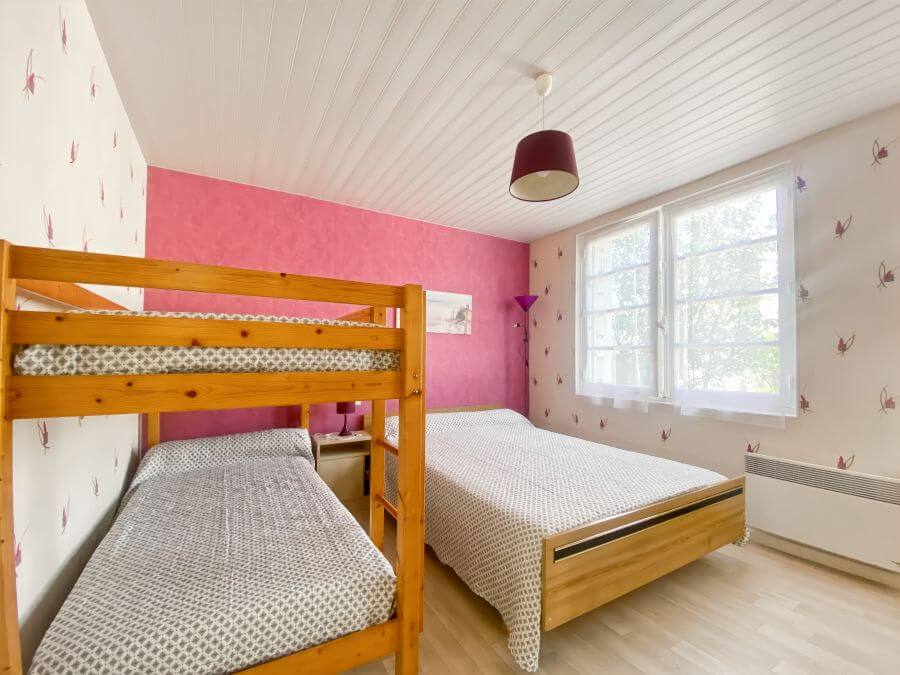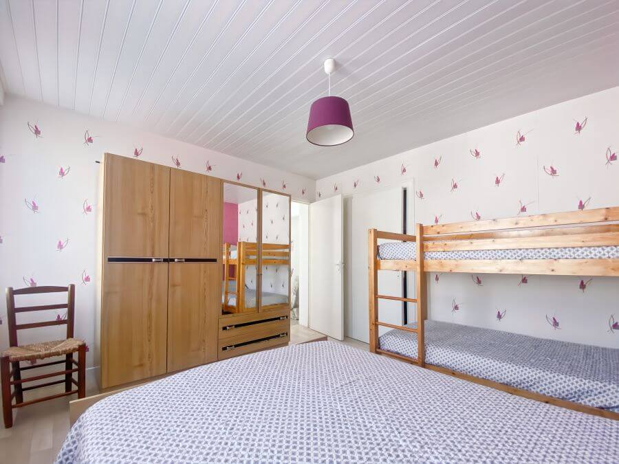 - une chambre avec 1 lit 2 personnes, 1 lit superposé pour 2 personnes et une armoire.