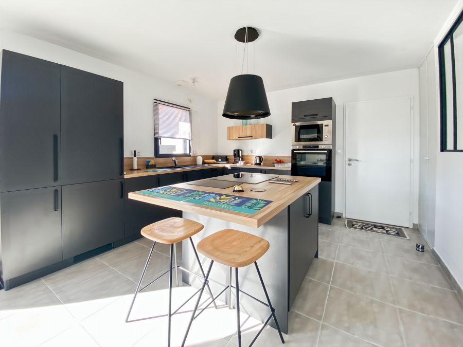 La maison comprend : un séjour lumineux avec une cuisine toute aménagée avec plaque induction, four, micro-ondes, lave-vaisselle, réfrigérateur-congélateur ainsi que tout le nécessaire pour cuisiner. Deux chambres avec chacune un lit double de 140 cm x 200 cm, une salle d'eau avec cabine de douche et WC indépendant.