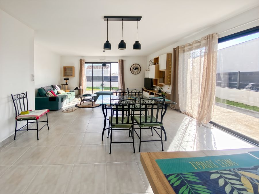 Découvrez cette charmante maison de plain-pied, récente et moderne, située à La Barre de Monts Fromentine. Parfaitement adaptée pour un séjour agréable, elle dispose de deux chambres confortables, chacune équipée d'un lit de 140 cm x 200 cm. L'intérieur spacieux et lumineux vous offrira un cadre de vie agréable, idéal pour se détendre en toute tranquillité.