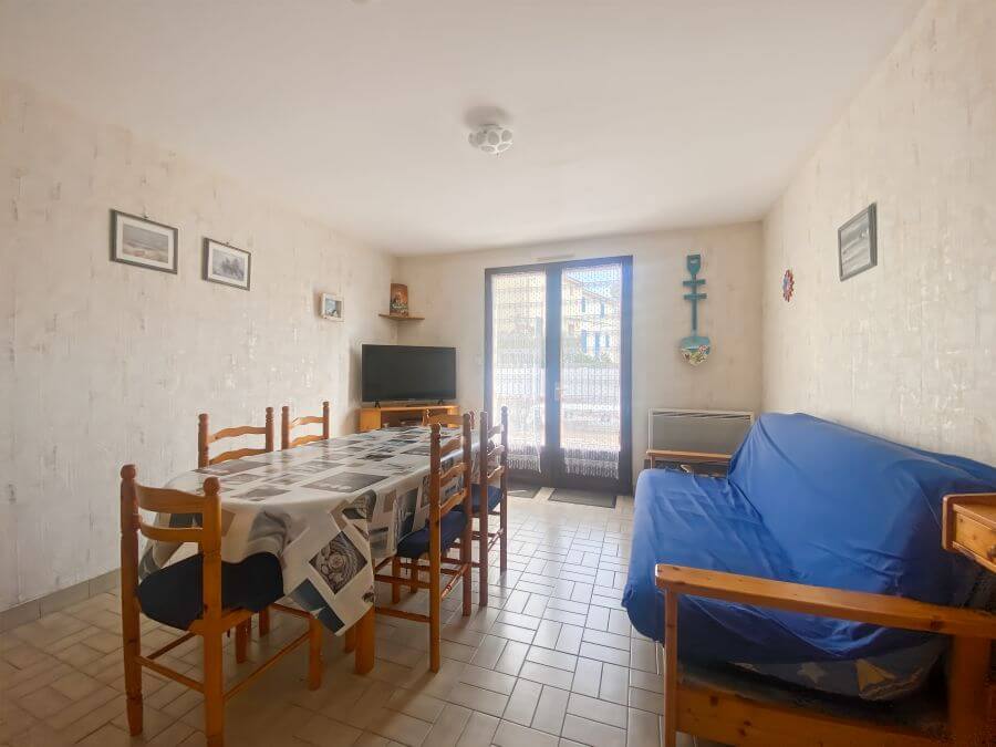 - un salon séjour donnant sur la terrasse, avec canapé, table, chaises, TV .